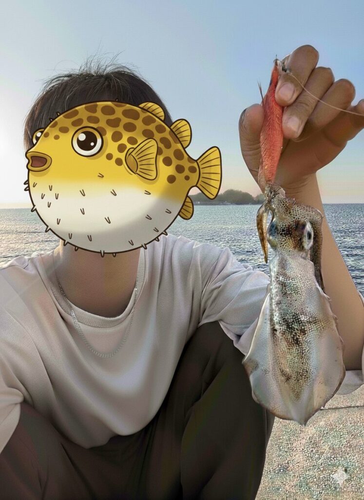 朝まずめから漁港に入り、まずはエギングから。