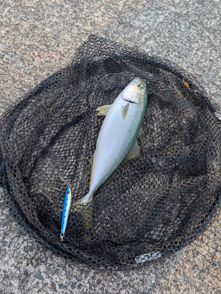 そろそろ帰ろうかと思いましたが最後にメタルジグで、ライトショアジギング!